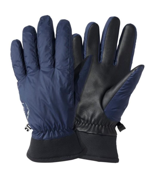- Body: 100% Recycled NylonCuff: 92% Recycled Polyester, 8% SpandexLining: 100% PolyesterPalm: Sheepskin LeatherInsulation: Goose Down (minimum 80 % Down)Waterproof Insert: 100% Thermoplastic Urethane