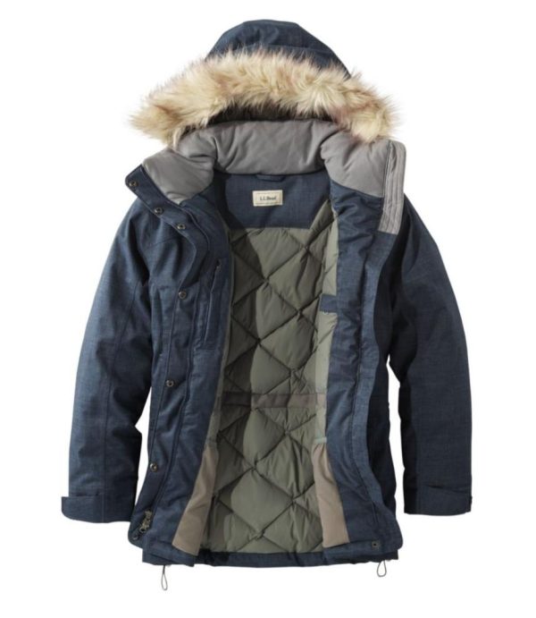 - Hooded: Yes, attached insulated hood with zip-off faux fur trim