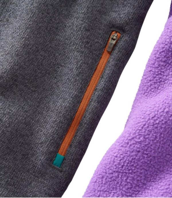 - Sweater Fleece on lower half has a smooth, rugged sweater-knit exterior and soft, brushed interior.